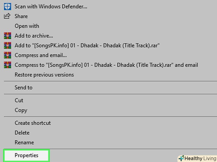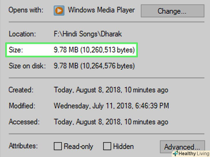 НатиснітьВластивості.відкриється вікно з властивостями файлу, включаючи його загальний розмір.