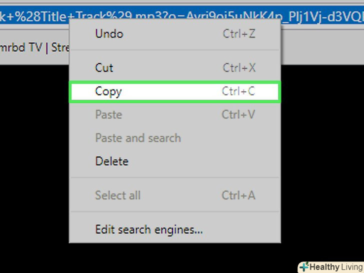 Клацніть за адресою аудіофайлу.клацніть по адресному рядку браузера у верхній частині вікна, щоб виділити адресу файлу.