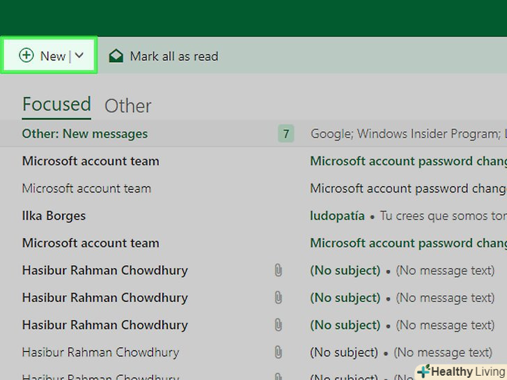 - УOutlook натисніть "+ Створити "над списком листів у папці "Вхідні";