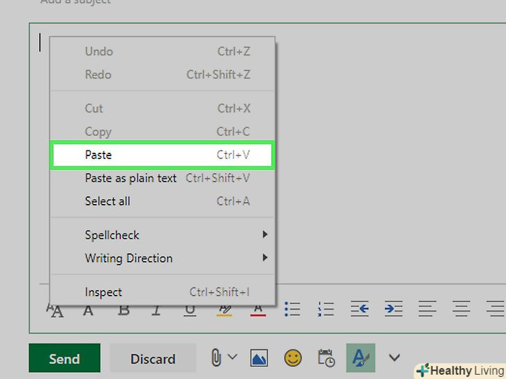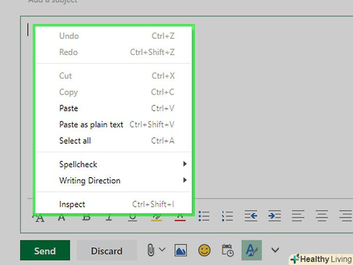 Клацніть двома пальцями (Mac) або правою кнопкою миші (Windows) по полю для введення тексту листа. у це поле ви вставите адресу файлу.
