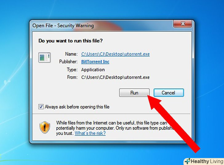 Запустіть завантажений файл. встановіть uTorrent. Якщо у Вас Mac OS X, перетягніть файл .dmg в папку з програмами і додатками.- Якщо ви не хочете, щоб uTorrent встановлював додаткові програми і панелі, зніміть галочку з усіх Програм, установку яких ви не підтверджуєте.