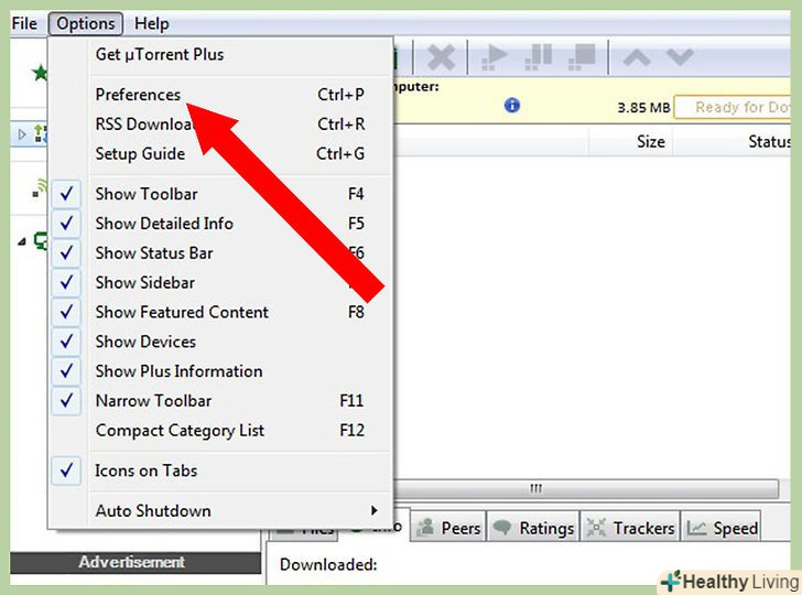 Переконайтеся, що ваш роутер правильно налаштований. Якщо ви хочете мати хороше з'єднання і високу швидкість, вам потрібно встановити переадресацію порту для uTorrent.- Після установки uTorrent, відкрийте його і натисніть на меню Налаштування. Виберіть Параметри. Натисніть параметри підключення. Запишіть порт, вказаний у списку.