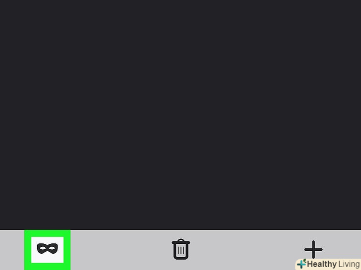 Торкніться значка у вигляді маски. ви знайдете його в лівому нижньому кутку. Маска стане фіолетовою-це означає, що включений приватний режим.