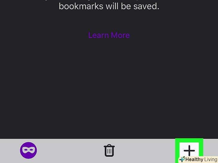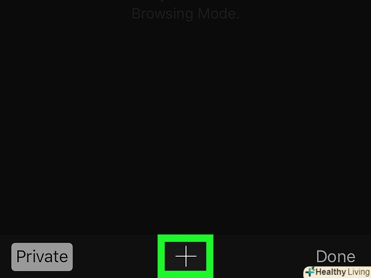 Натисніть+ . цей значок знаходиться в нижньому правому куті. Відкриється нова приватна вкладка, на якій історія не зберігається.- Щоб перейти в звичайний режим, натисніть на значок у вигляді квадрата з числом, а потім торкніться значка у вигляді маски, щоб відключити приватний режим.