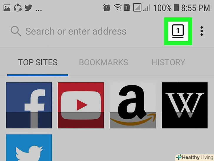 Натисніть на значок "Вкладки". цей значок у вигляді квадрата з числом знаходиться внизу екрану. На екрані відобразяться мініатюри відкритих вкладок.