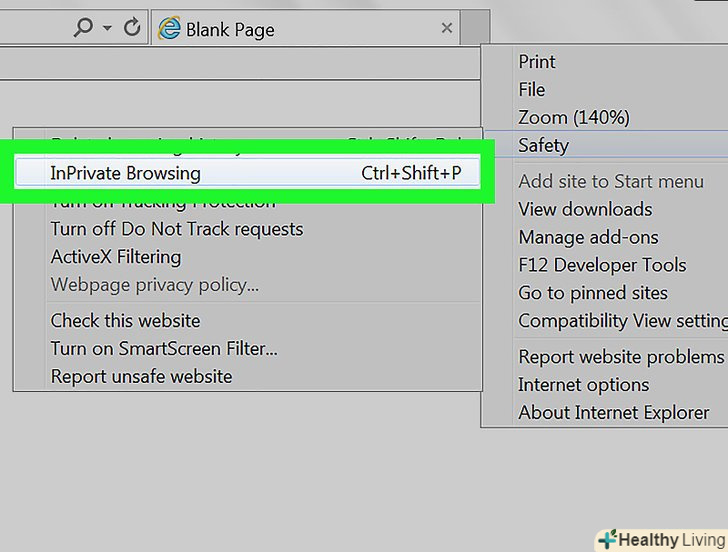 Клацніть поНове вікно InPrivate . Ви знайдете цю опцію вгорі меню. Відкриється нове ПРИВАТНЕ вікно, в якому історія завантажень і історія переглянутих сторінок не зберігаються.- Коли ви закриєте ПРИВАТНЕ вікно, ви перейдете в звичайне вікно браузера.