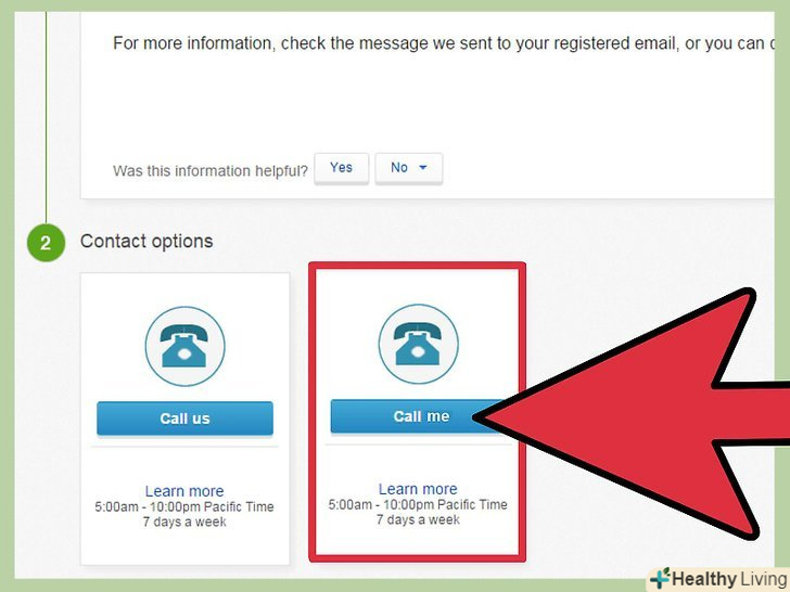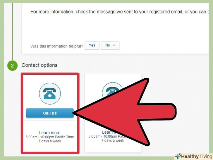 Зателефонуйте на eBay за номером, наданим на сайті. ви будете пов'язані з представником eBay.- Якщо ви оберете опцію Передзвоніть мені (Call me), вам потрібно буде ввести свій номер телефону в текстове поле і натиснути Передзвоніть мені (Call me). Тоді представник eBay зв'яжеться з вами за вказаним номером у вказаний на сайті Час. [3]