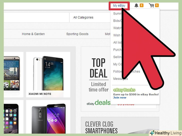 Відкрийте сайт eBayHttp://www.ebay.com і натисніть "My eBay" у верхньому правому куті.