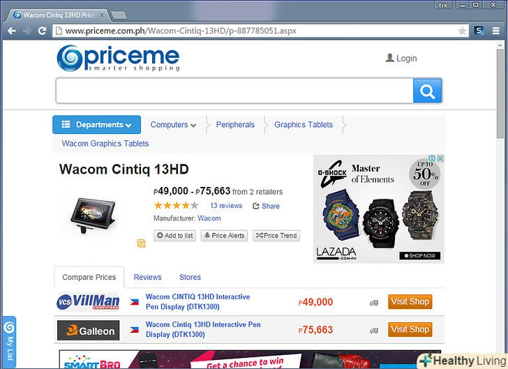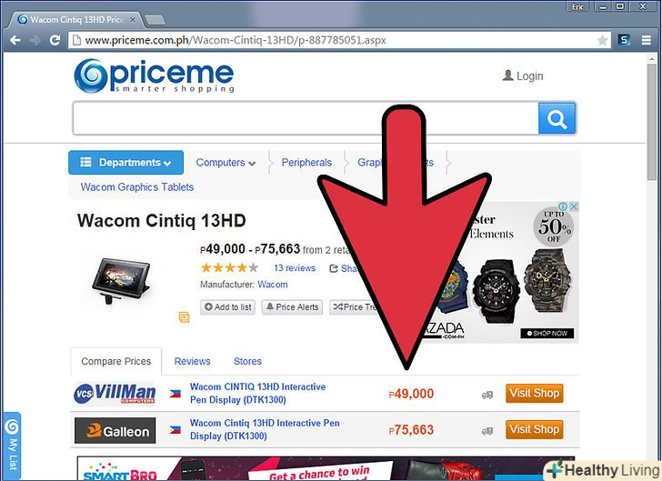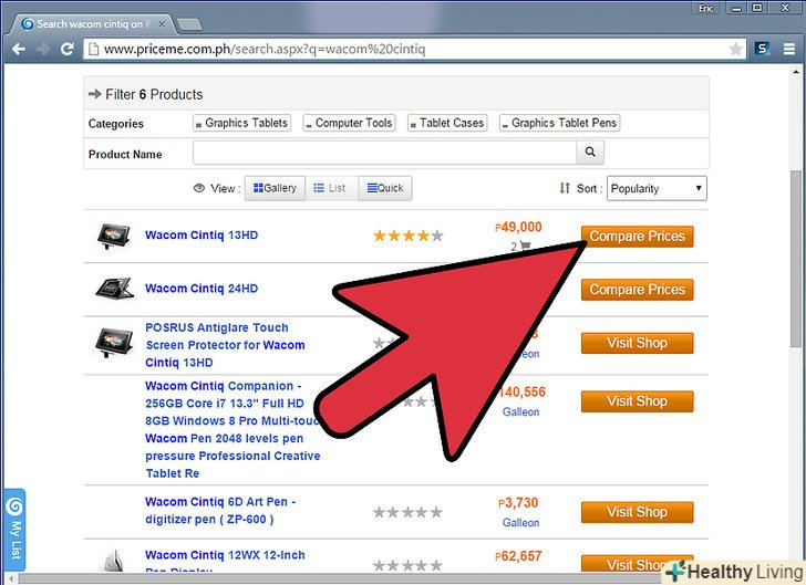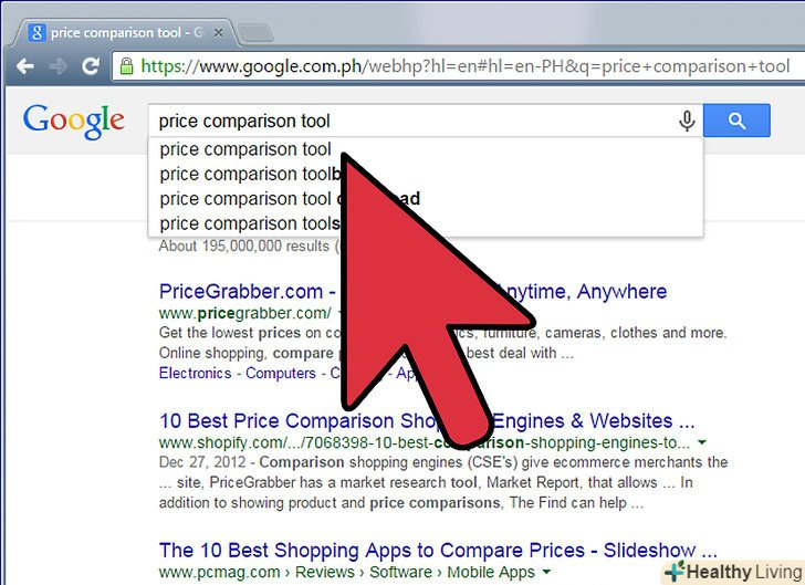 Знайдіть хороший сайт для порівняння цін. сайти або додатки для порівняння цін дозволяють вам вибрати товар, і побачити ціни на нього в різних інтернет-магазинах. Більшість з цих сайтів або додатків є продуктами сторонніх розробників, і ніяк не пов'язані з самими магазинами або продавцями. Тим не менш, деякі великі постачальники мають свої власні сайти для порівняння цін.- Щоб знайти ці сайти в Інтернеті, відкрийте пошукову систему, якою Ви користуєтеся, і введіть "порівняння цін". Ви також можете написати "порівняння цін в інтернет-магазинах".