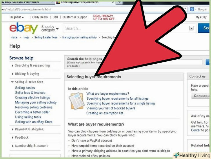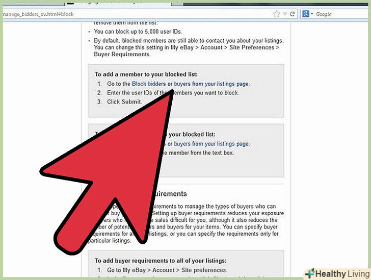Натисніть на посилання в цьому розділі під назвою " Block bidders or buyers from your listings page.”