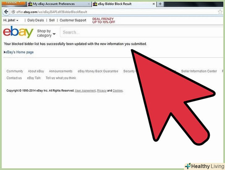 Натисніть на " Submit.” користувачі eBay, яких ви заблокували, більше не зможуть зв'язатися з вами щодо товарів і більше не зможуть купувати або брати участь у торгах ваших товарів. [1] .