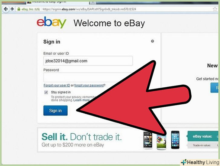 Пройдіть на eBay і увійдіть в ваш аккаунт.