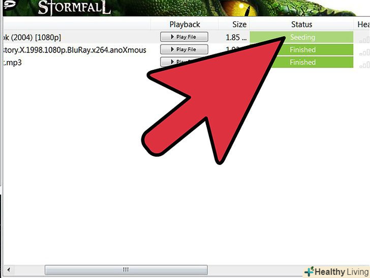 Зверніть увагу, що статус скачаного файлу змінився на «лунає». якщо ні, зробіть це вручну. Але в більшості торрент-клієнтів статус змінюється автоматично.