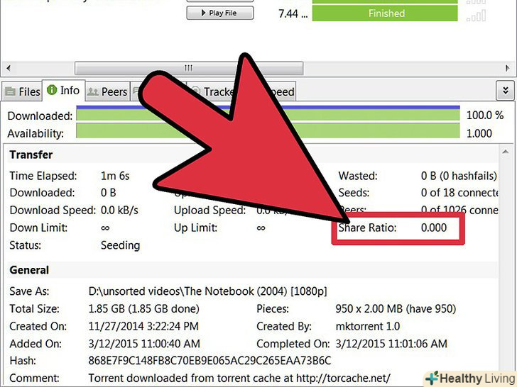 - Хоча нічого не станеться, якщо співвідношення завантажено/роздано не стане рівним 1, Деякі торрент-трекери вимагають, щоб цей показник дотримувався — в іншому випадку користувача можуть заблокувати.