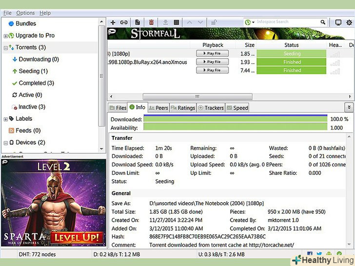 - Рекомендуємо користуватися торрент-клієнтом uTorrent — в ньому статус скачаного файлу змінюється автоматично.