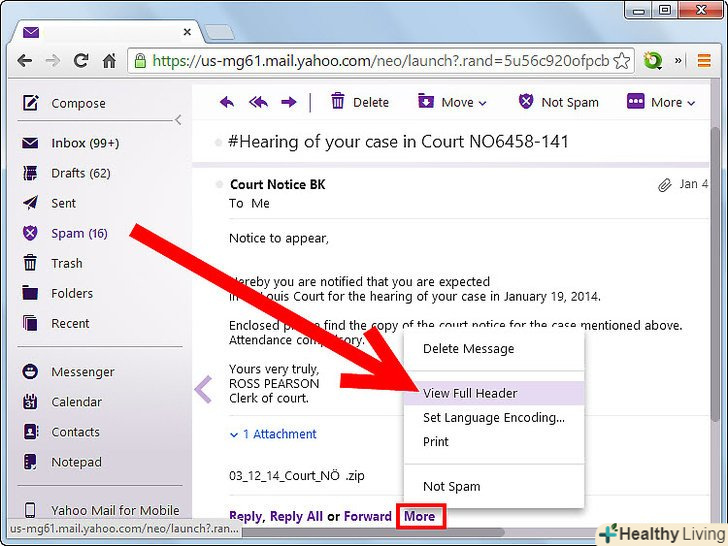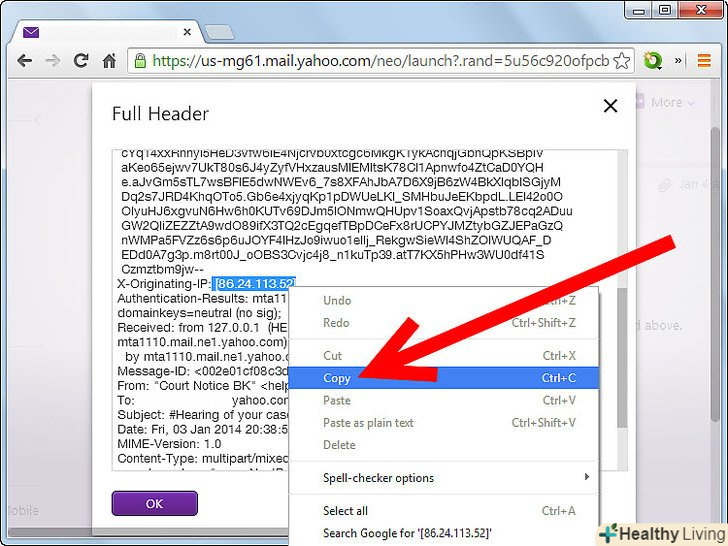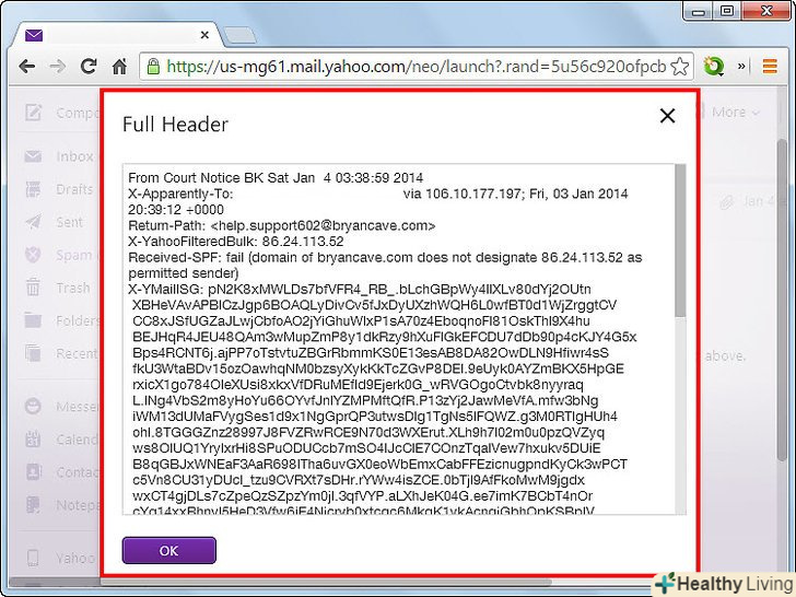 - В Yahoo, натисніть правою кнопкою або натисніть на Control і клікніть на повідомлення. Виберіть " View Full Headers."