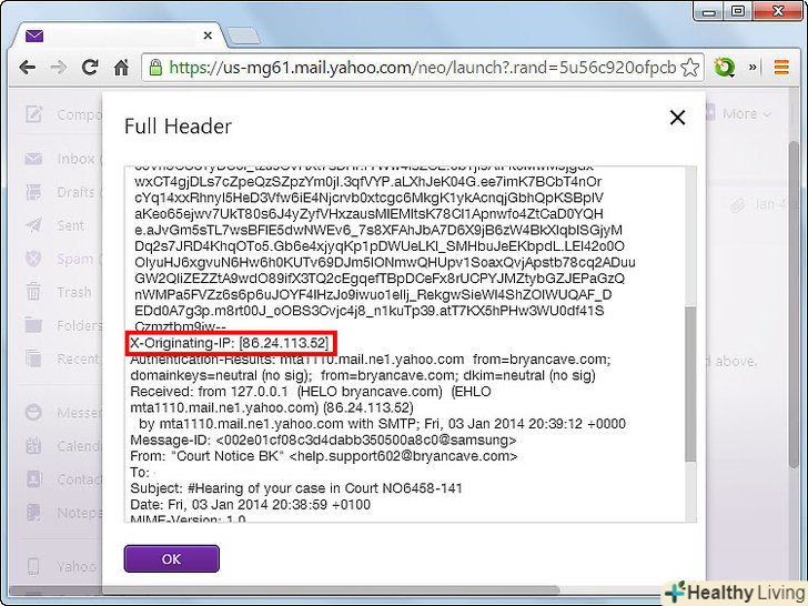 Визначте IP-адресу в наданій інформації.дотримуючись одного з цих методів для вашого провайдера електронної пошти, ви відкриєте нове віконце з потрібною інформацією про лист.- Якщо віконце занадто маленьке, то скопіюйте інформацію і вставте в документ Word.