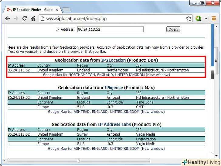 Перегляньте надану інформацію.найчастіше в результатах буде відображатися місто і можливо назва комп'ютера.