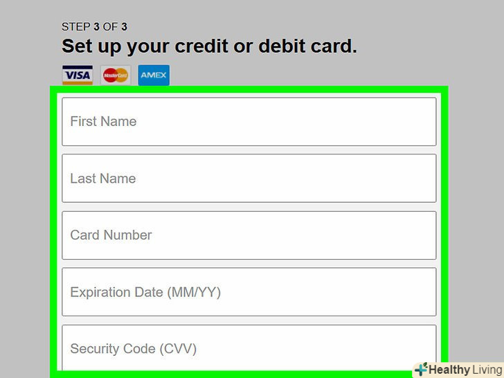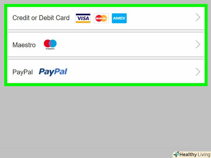 Натисніть на метод оплати. доступні варіанти:- "Credit or Debit Card" (банківська карта)