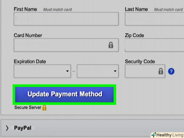 Прокрутіть вниз і натиснітьUpdate Payment Method (оновити метод оплати).ця опція знаходиться внизу форми. Ваш метод оплати буде оновлено.