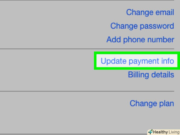Клацніть поUpdate payment info (оновити метод оплати). ця опція знаходиться праворуч на сторінки в розділі " MEMBERSHIP amp; BILLING» (Членство і білінг).- Якщо ви ще не вказали жоден метод оплати, натисніть «Add payment info» (додати метод оплати).