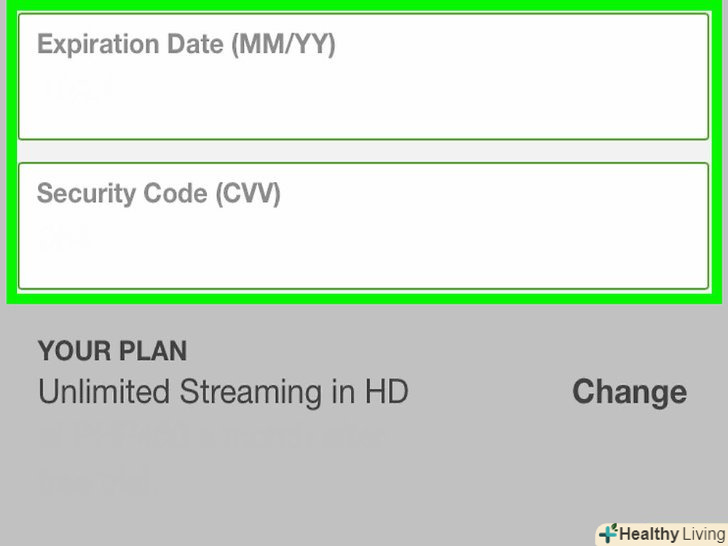 Введіть інформацію про метод оплати.заповніть всі зазначені поля або дотримуйтесь інструкцій на екрані, щоб Netflix прийняв ваш метод оплати.
