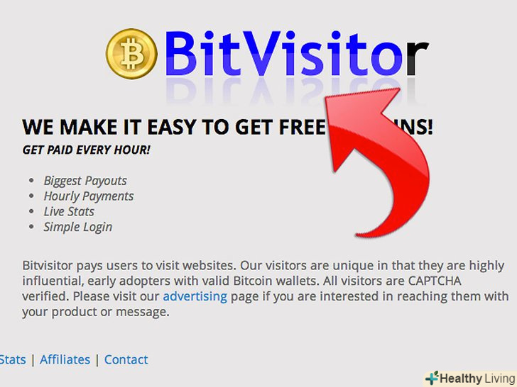 Дивіться сайти і відео за біткоіни. Сайт BitVisitor платить мікродолі біткоіни за кожні 5 хвилин перегляду сайту. Виплати реально невеликі, але зате і реєструватися не треба, достатньо лише вказати адресу вашого гаманця, ввести капчу і клікати кожні 5 хвилин.