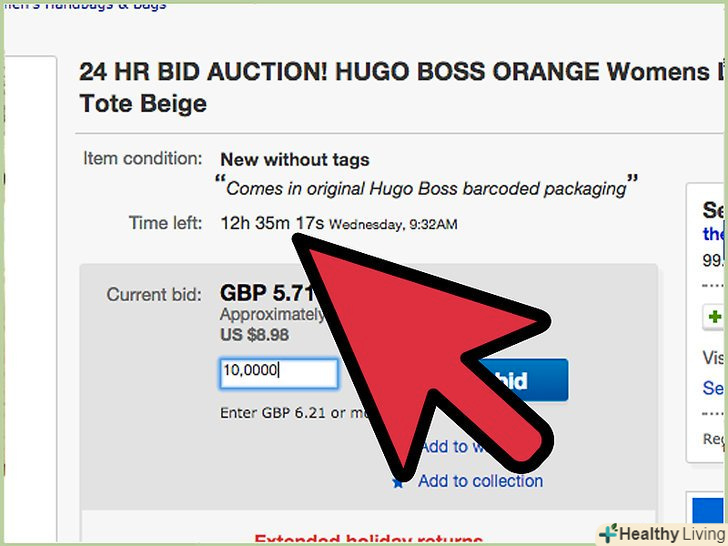 Відкладайте до самого останнього моменту.найефективніші ставки робляться в останні 10 секунд аукціону.- Якщо ви робите максимальну ставку заздалегідь, то може розвернутися війна ставок, в якій ставки двох або більше покупців поступово покроково ростуть. Навіть якщо ваша максимальна ставка більше, ніж у конкурентів, вони все одно можуть підняти свій максимум і перебити вас.