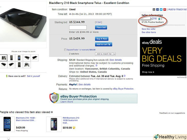 - Перевірте рейтинг продавця. Залишені попередніми покупцями відгуки та оцінки допомагають оцінити, чи варто взагалі зв'язуватися з продавцем. Хороших продавців відрізняє рейтинг (від 94 до 100%). Кількість оцінок також показує популярність продавця, чим більше хороших оцінок, тим краще продавець.