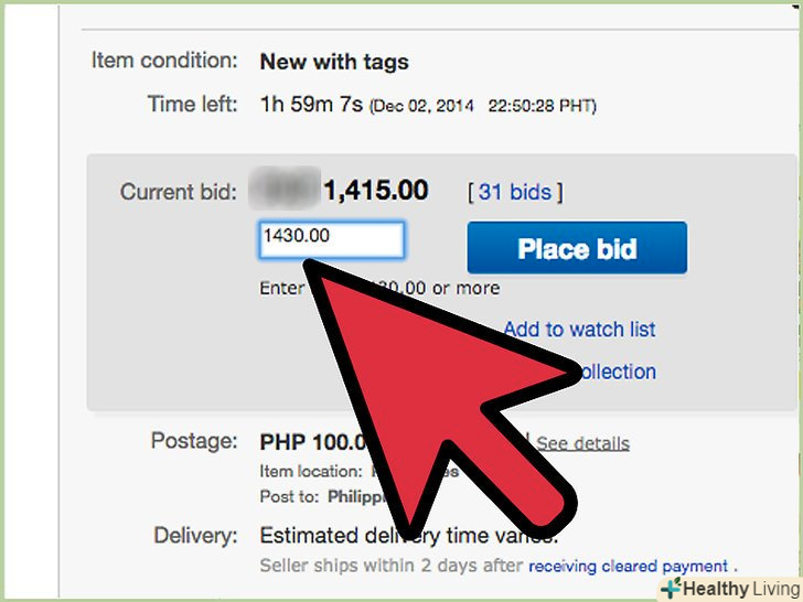 Вибирайте максимальну ставку з додатковими центами.наприклад, якщо ваша максимальна ціна - $50.00, введіть максимальну ставку в $50.11.[4]- Більшість покупців робить ставки в цілих значеннях. Аукціони ж виграються з різницею в центи. Якщо інший продавець вказав максимальну ставку в $50.00, то, поставивши максимум в $50.11, ви його переб'єте.