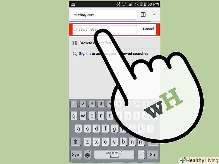 Використовуючи смартфон, зайдіть на сторінку eBay.мобільна версія безкоштовна, працює на будь-якому смартфоні, знайти її можна на http://mobileweb.ebay.com- Процес знаходження товару і участі в торгах по суті такий же. Різниця тільки в тому, що мобільні версії зазвичай відредаговані так, що вони більш доступні на мобільному пристрої.