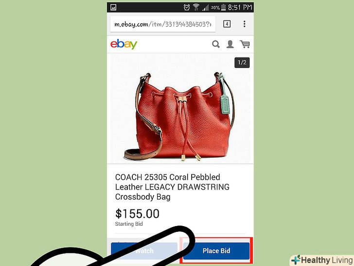 Клікніть на клавішу "Place Bid" (зробити ставку).так ви вступите в торги. Якщо ви ще не зайшли в свій аккаунт, то потрібно буде зробити це зараз.- Якщо аккаунта на eBay у вас немає, то можна створити. Це безкоштовно, з його допомогою ви зможете відстежувати поточні ставки і накази.