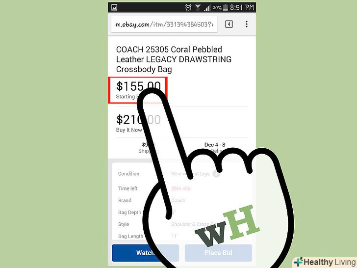 Перевірте детальний опис товару. перевірте і перевірте ціну, стан, опис товару, на який хочете зробити ставку. Не треба приймати рішення тільки глянувши на фото, деякі недобросовісні продавці спеціально розміщують вводять в оману фотографії.- Перевірте рейтинг продавця. Залишені попередніми покупцями відгуки та оцінки допомагають оцінити, чи варто взагалі зв'язуватися з продавцем. Хороших продавців відрізняє рейтинг (від 94 до 100%). Кількість оцінок також показує популярність продавця, чим більше хороших оцінок, тим краще продавець.