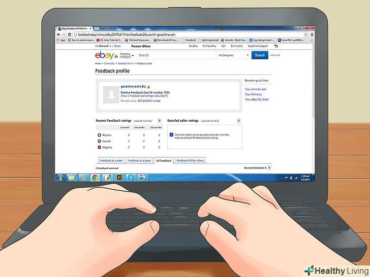 Почніть створювати Вашу репутацію, купивши кілька дрібних товарів. Один з важливих способів який дозволяє eBay вважатися безпечним майданчиком для продажів – це стимулювання продавців і покупців залишати відгуки один про одного. Покупець перевіряє рейтинги відгуків продавця і покупка декількох товарів - найшвидший спосіб додати позитивний рейтинг в ваш профіль.- Постарайтеся купити дрібні товари, які вам знадобляться так чи інакше і оплатіть їх відразу, щоб отримати хороший відгук як покупець. Не турбуйтеся про покупки-їх можна буде перепродати. Найголовніше-заявити про себе як про надійного члена спільноти eBay.