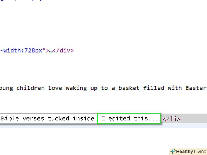 Завершіть редагування. натисніть "Enter" і закрийте інспектор коду. Тепер на сторінці сайту буде відображений текст або зображення, яке ви додали. Природно, сама сторінка не була відредагована, і при її оновленні всі внесені вами зміни пропадуть.