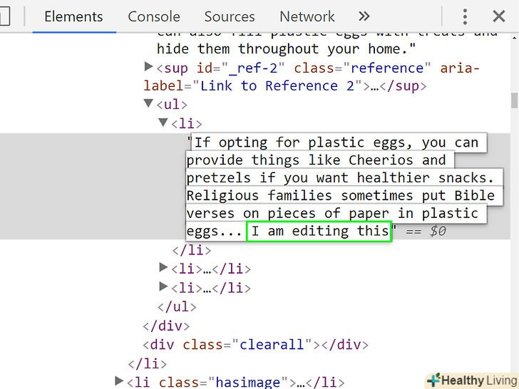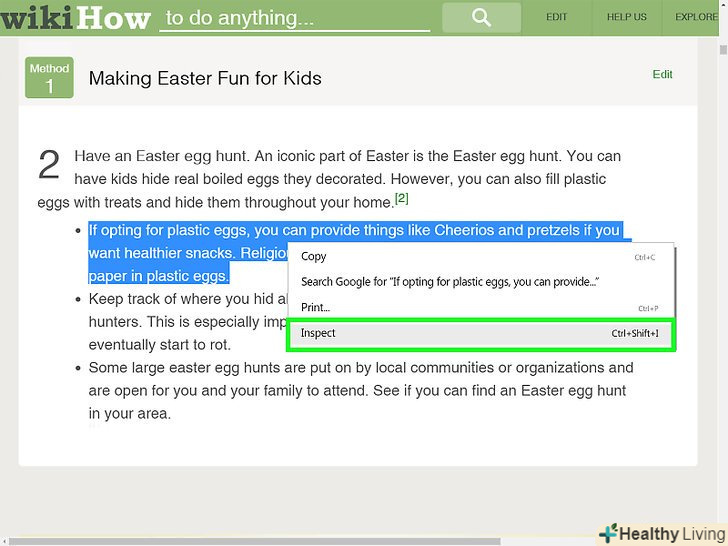 Знайдіть текст або фотографію, яку хочете змінити. відкрийте сторінку в Chrome, яку хочете відредагувати. Якщо ви хочете відредагувати текст, виділіть слова, які хочете змінити, і клацніть по ним правою кнопкою миші. Якщо ви хочете відредагувати фотографію, просто клацніть по ній правою кнопкою миші. [3]- Щоб відредагувати фотографію, вам потрібно буде завантажити інше фото і замінити на нього поточне. Для цього вам потрібно замінити URL-адресу у вихідному коді новою URL-адресою.