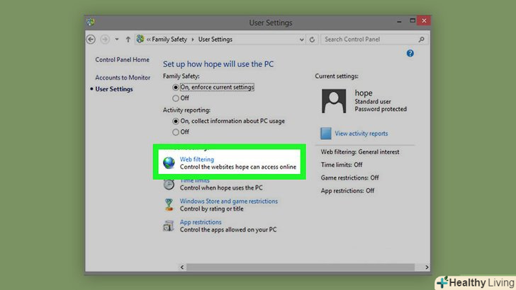 Поставте прапорець біля опції»Включити веб-фільтр". так ви зможете заблокувати сайти. Відобразяться три опції:- "Строгий". Будуть заблоковані всі сайти, крім тих, контент яких призначений для дітей.