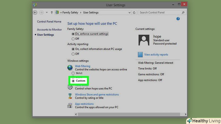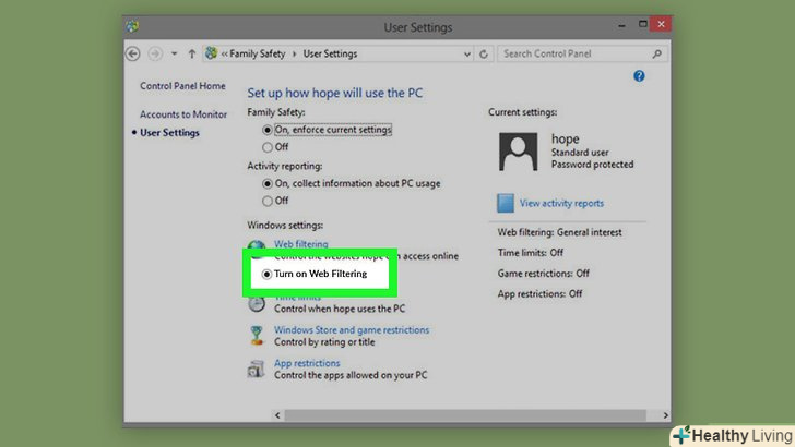 Клацніть по потрібній опції фільтра. він буде включений для обраного користувача.- Якщо ви вибрали опцію «настроюється», приберіть прапорець біля категорії «сайти для дорослих».