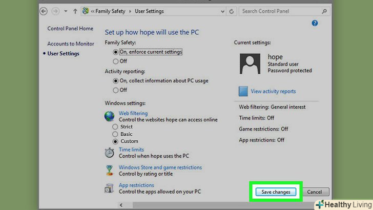 НатиснітьЗберегти . ця кнопка знаходиться в нижньому правому куті сторінки. Програма "Сімейна безпека Windows Live" приступить до відстеження активності обраного користувача.
