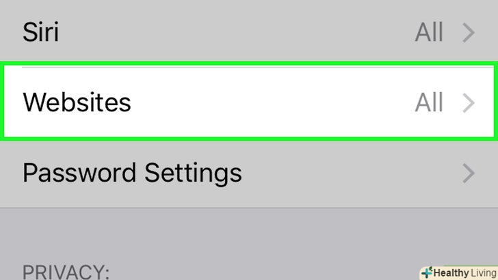 Прокрутіть вниз і натиснітьСайти . це опція знаходиться в розділі «Вміст».