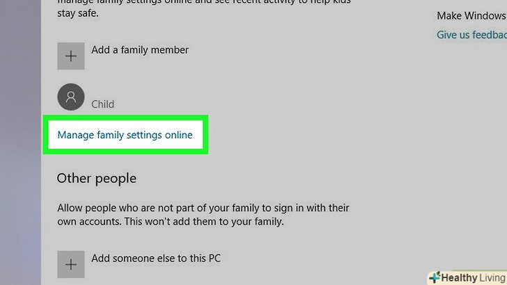 Клацніть по посиланню «управління настройками сім'ї». вона відобразиться під ім'ям звичайного користувача (не адміністратора). [1]