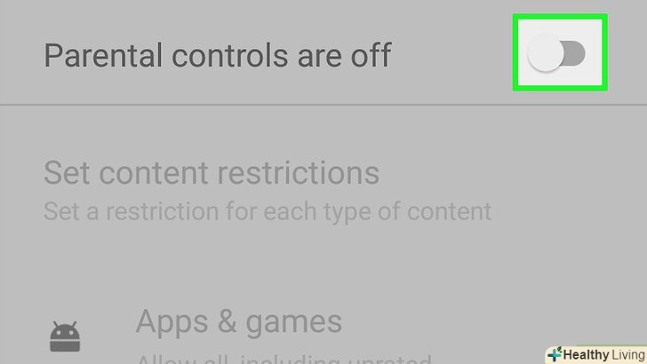 Пересуньте повзунок у опціїБатьківський контроль в положення "включити". він знаходиться у верхній частині екрана. Повзунок стане зеленим, що означає, що батьківський контроль включений.