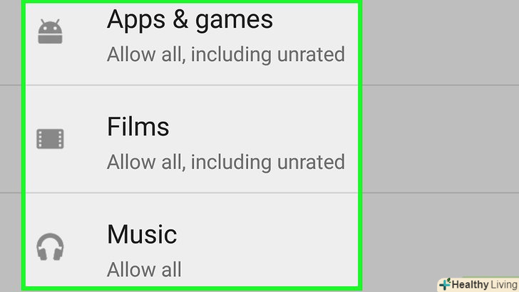 Виберіть категорію вмісту. є п'ять категорій:- Програми та ігри