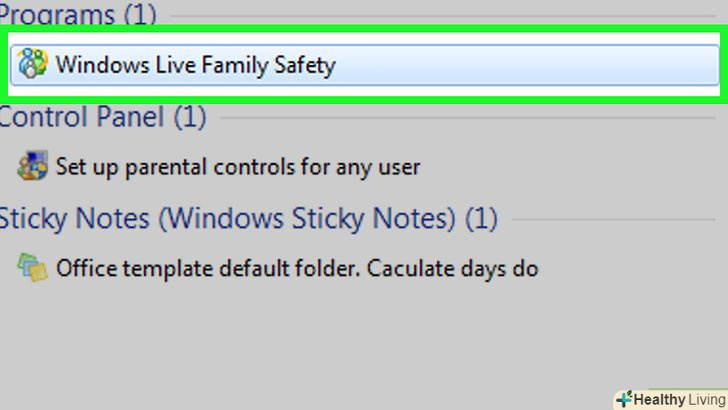 У рядку пошуку меню «Пуск» введіть Сімейна безпека windows live . Результати пошуку відобразяться у вікні над рядком пошуку.