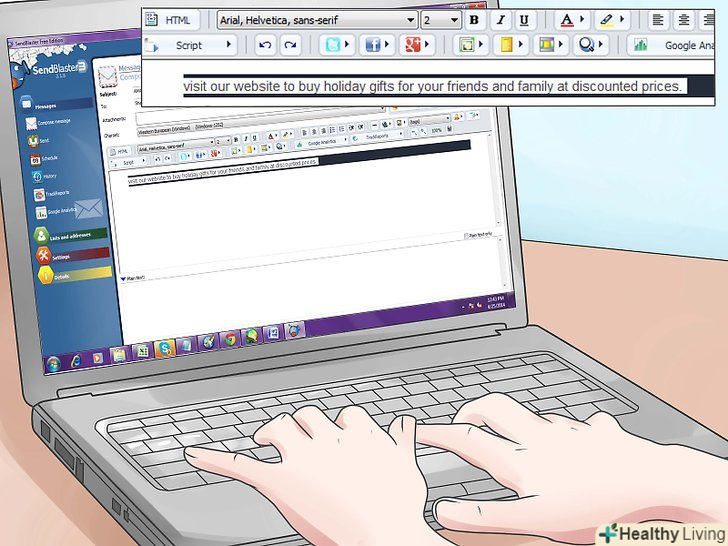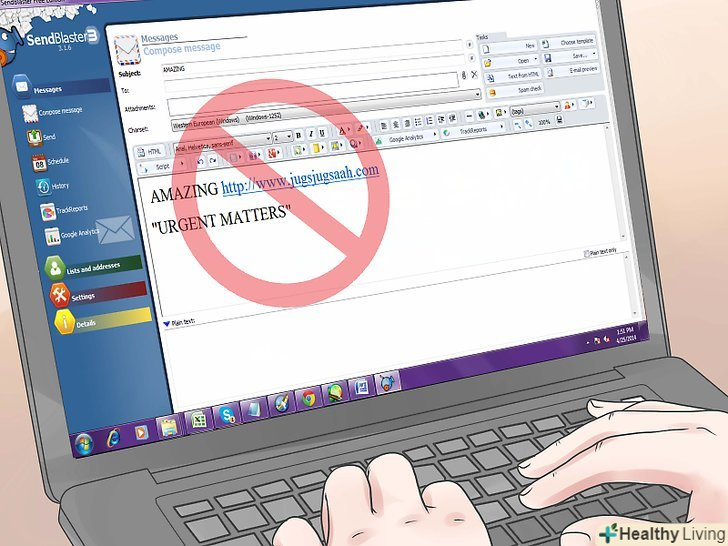 Відформатуйте листи цільової масової розсилки таким чином, що б запобігти відправку ваших листів в спам читачами і поштовими клієнтами. деякі ключові слова і текстові формати будуть автоматично розпізнаватися поштовими клієнтами як спам або можуть вплинути на рішення читачів - відзначити їх як спам. Все це запобіжить доставку та отримання ваших наступних листів на невизначений термін.- Утримайтеся від використання таких методів форматування як: написання слів великими літерами, наповнення тіла листа безліччю посилань, розміщення фотографій виключно в тілі повідомлень і завершення пропозицій декількома знаками оклику.