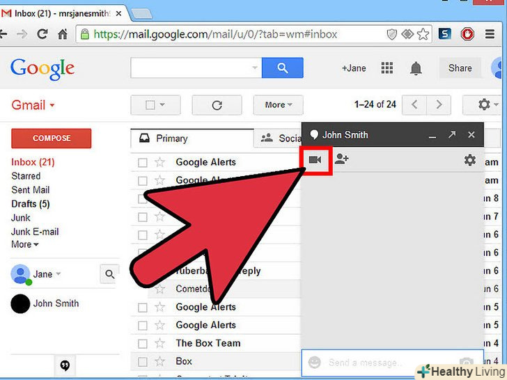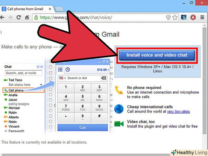Зліва внизу Ви повинні побачити невеликий блоку чату, в якому є кнопка відео-чату, яка виглядає як відеокамера і кнопка телефонних дзвінків, виглядає як телефон. натисніть на значок телефону.