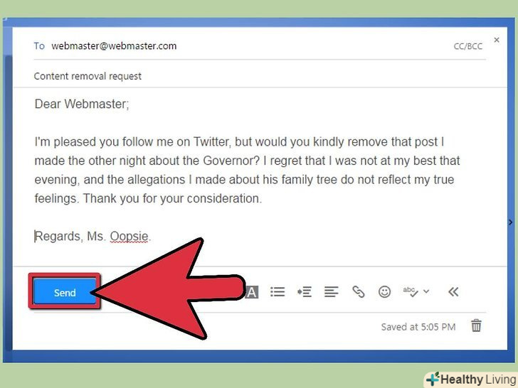 - Якщо ж інформацію опублікував хтось сторонній, відправте йому лист по електронній пошті. Воно повинно бути витримано в офіційно-діловому стилі. Дотримуйтесь правил хорошого тону, викладайте думки коротко і по суті. Приміром: