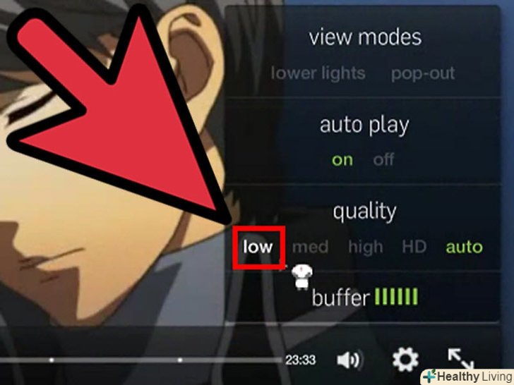 Дивіться відео в більш низькій роздільній здатності. Якщо не хочете чекати, поки відео завантажиться, зменшіть його дозвіл до такого рівня, з яким ваше інтернет-з'єднання зможе впоратися.- Натисніть на іконку шестерінки в правому нижньому кутку вікна відео і виберіть більш низький дозвіл з випадаючого писку.