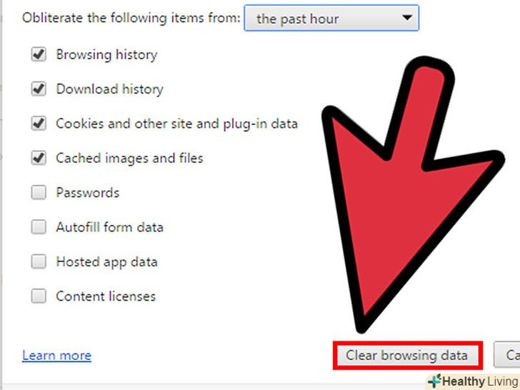 Очистіть кеш і історію браузера. відкрийте меню браузера і виберіть зі списку меню опцію «Видалити історію». Так ви видалите кеш і історію свого браузера.- Ця проблема зазвичай виникає, коли в браузері зберігається занадто великий обсяг кеша і він не в силах завантажити нові дані з інтернету.
