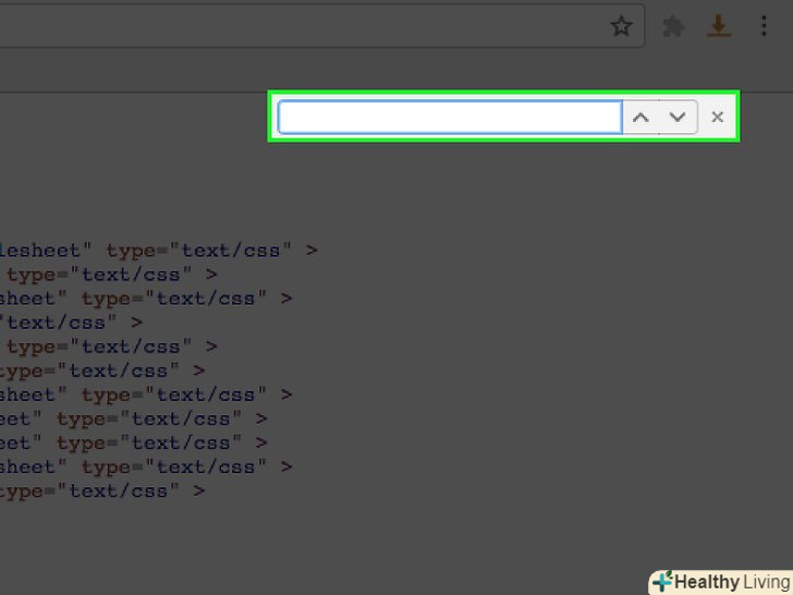 ЗатиснітьCtrl (Windows) або ⌘ Command (Мас) і натисніть F . Таким чином, ви відкриєте на сторінці з вихідним кодом пошукове вікно.